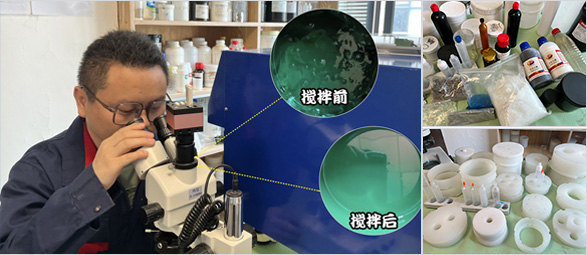 經過我們前期的溝通,我們給研究院做了一份詳細的消泡方案??蛻暨x擇了我們的物理消泡方式來處理新材料氣泡??蛻魧ξ覀兲煨薪≌婵諗嚢杳撆輽C非常認可,希望能夠帶著樣品親自上門試樣。我們袁總對此非常重視,親自陪同輔導我們完成本次試樣